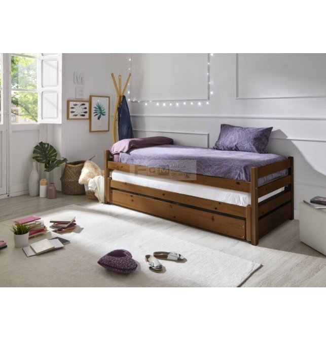 Dormir, jugar, invitar: todo cabe aquí. La segunda cama sale suave cuando llegan amigos y el gran cajón deja el cuarto en calma. Madera honesta, fabricación española y dos acabados para elegir.