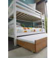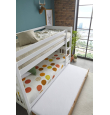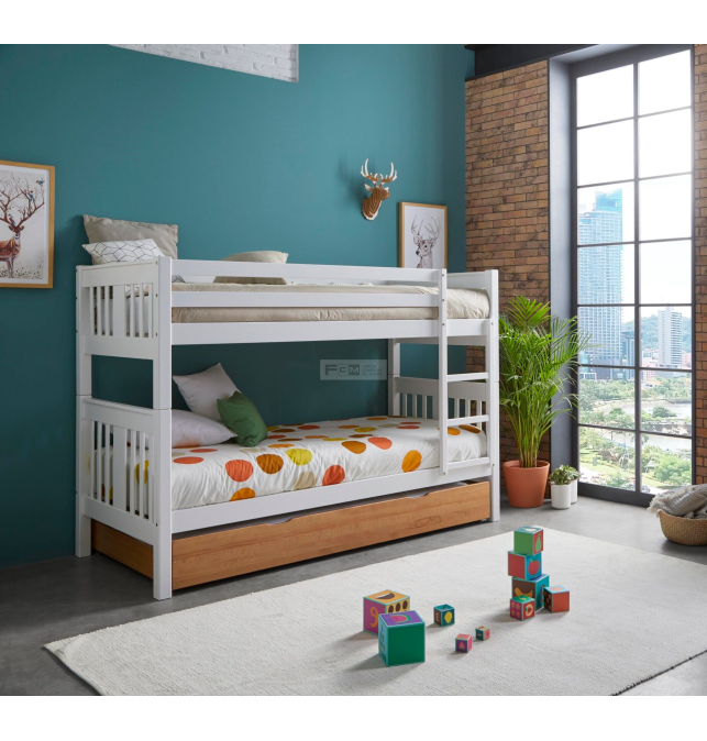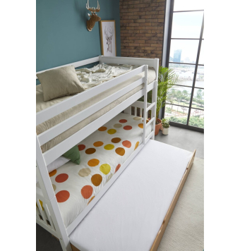 Litera de madera pensada para el día a día: segura, acogedora y con escalera lateral de acceso cómodo. Cuando cambie la habitación, se convierte en dos camas individuales. Hecha en España con detalle. Un básico bonito que libera metros y crea momentos.