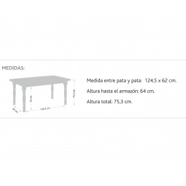 Mesa de 160X90 cm de pino y con refuerzo especial en las patas.