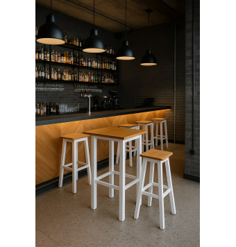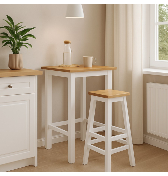Mesa de 70x70 cm de pino y con refuerzo especial en las patas.