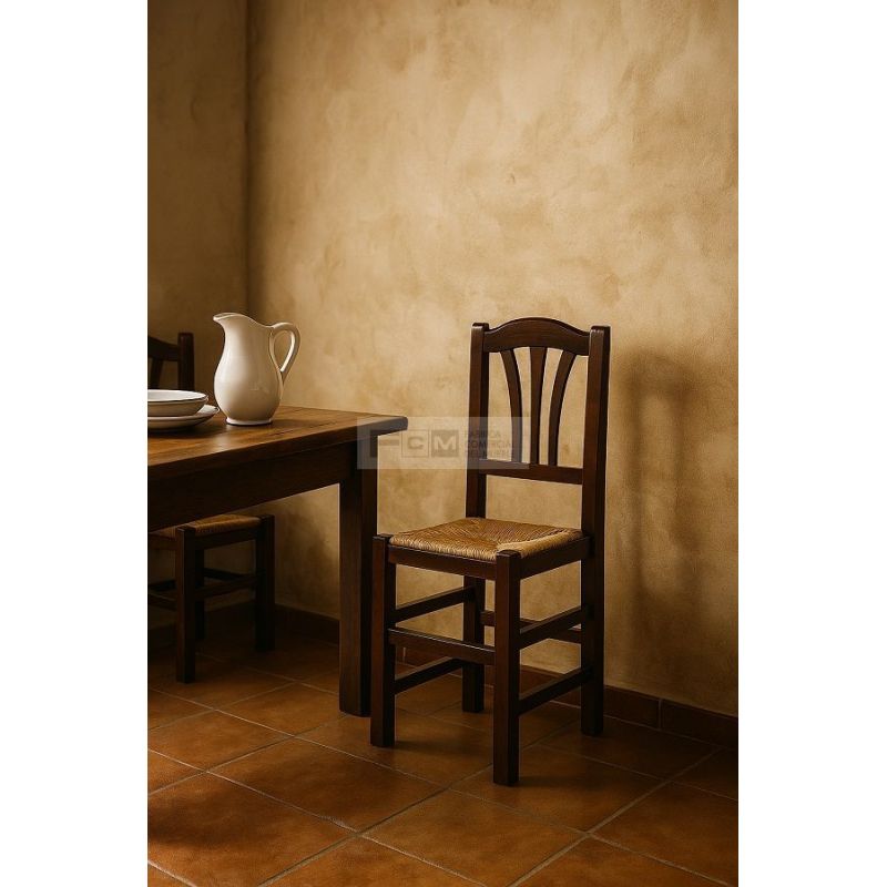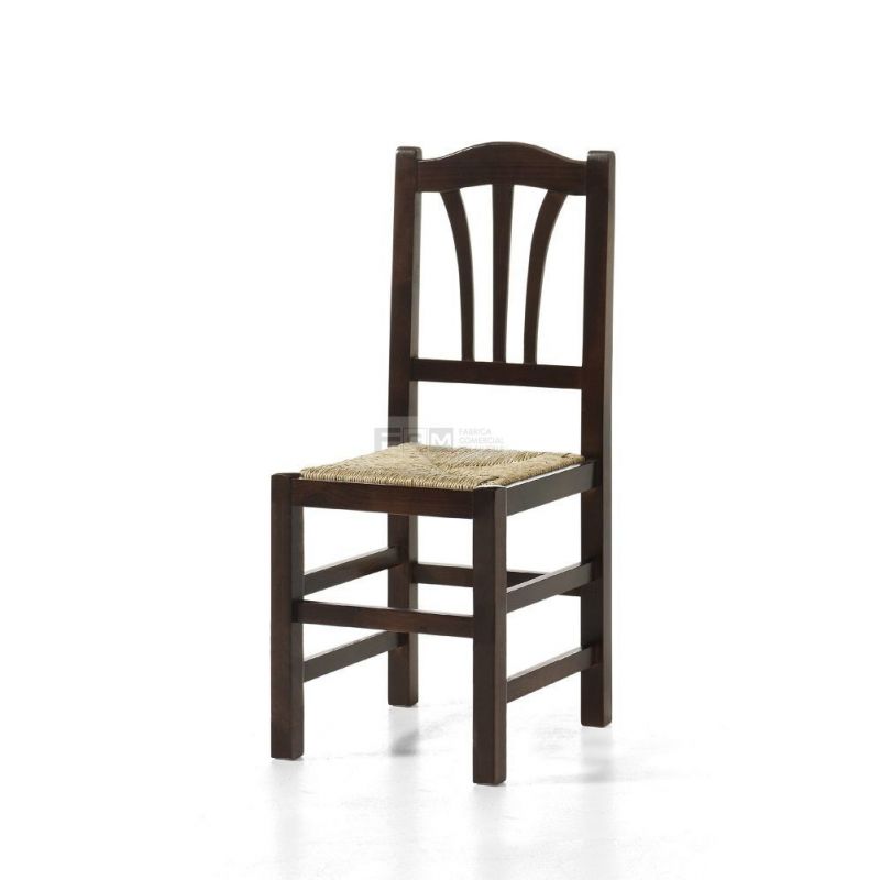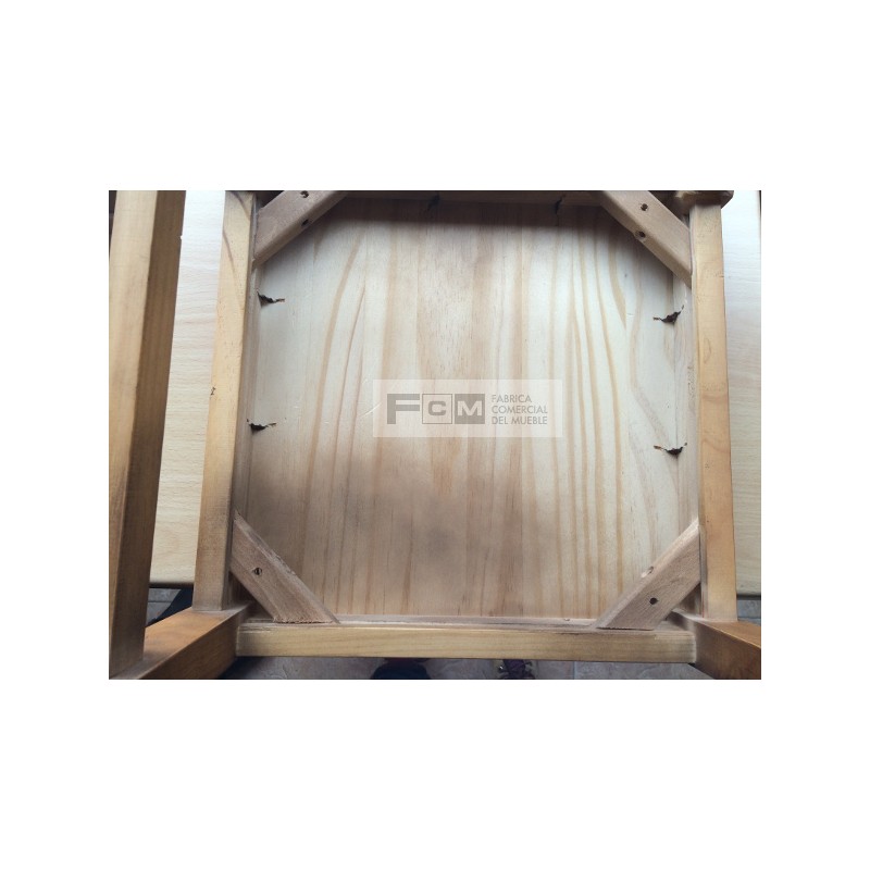 Silla de madera con chasis depino macizo y reforzado con 4 escuadras de haya y 3 traviesas laterales.
