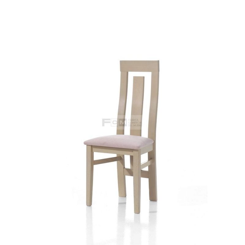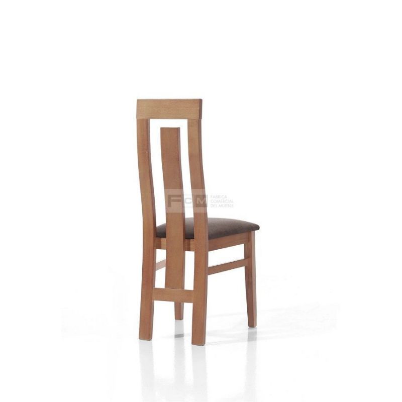 Silla de madera con chasis de haya maciza y reforzado con 4 escuadras de haya con triple diente y tornillo de acero más dos traviesas laterales.