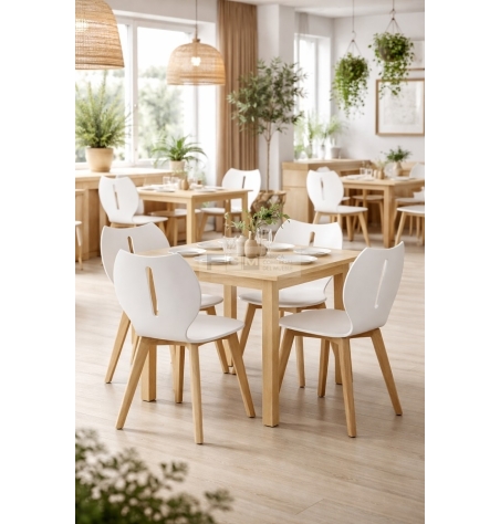 Silla de madera con chasis de haya maciza con sistema contramechonado.