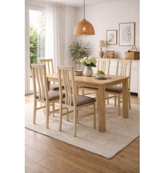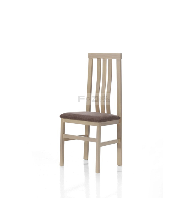 Silla de madera con chasis de haya reforzado con 4 escuadras de haya y dos traviesas laterales.