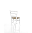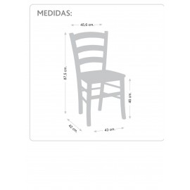 Silla de madera con chasis de haya maciza y reforzado con cuatro escuadras de haya, tres traviesas laterales, dos delanteras y dos traseras.
