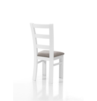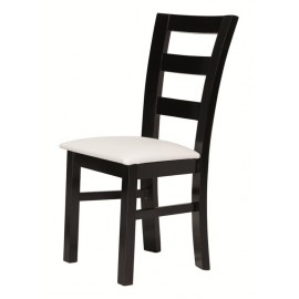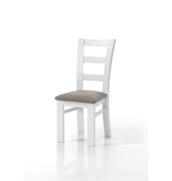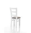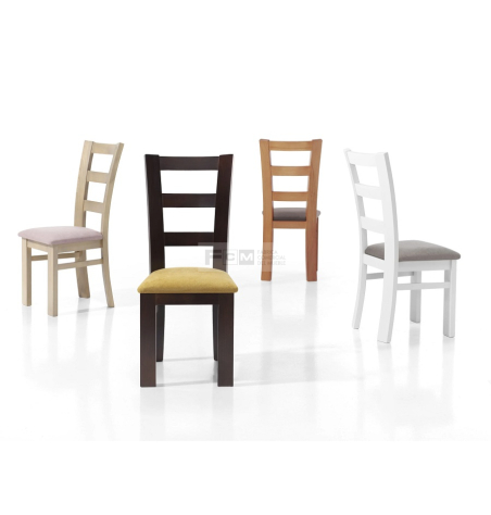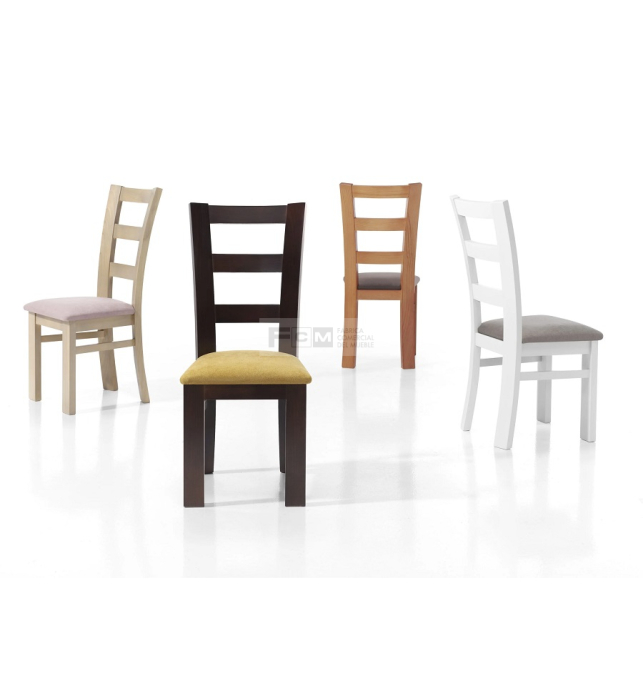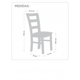 Silla de madera con chasis de pino macizo y reforzado con 4 escuadras de haya y con triple diente y tornillo de acero más dos traviesas laterales.