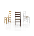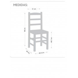 Silla de madera con chasis de pino macizo y reforzado con 4 escuadras de haya maciza más tres traviesas laterales, dos traviesas traseras y dos traviesas delanteras.