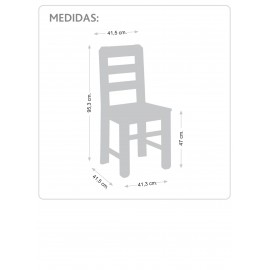 Silla de madera con chasis de pino macizo y reforzado con cuatro escuadras de haya maciza con triple diente y tornillo de acero más dos traviesas lateras y dos traviesas delanteras.