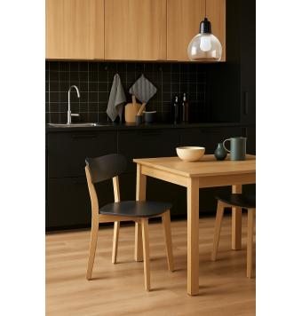 Silla de madera con chasis de haya maciza y reforzado con sistema contramechonado.