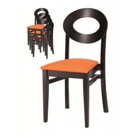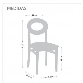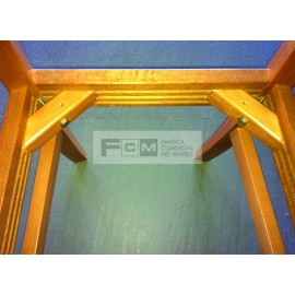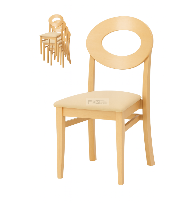 Silla de madera con chasis de haya maciza y reforzado con 4 escuadras de haya con triple diente y tornillo de acero más dos traviesas laterales.Apilable.