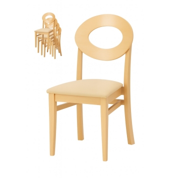 Silla de hostelería: Silla de madera de haya maciza apilable con refuerzo especial.