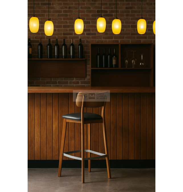 Taburete de hostelería: Taburete de madera de haya maciza con refuerzo especial.