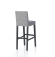 Taburete de madera con chasis de haya maciza y reforzado con cuatro escuadras de haya maciza más dos traviesas laterales, dos traviesas traseras y dos traviesas delanteras.