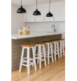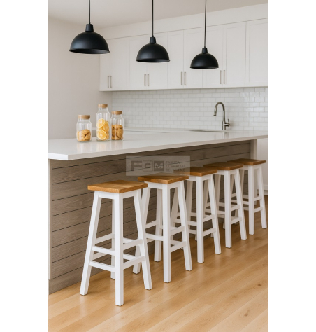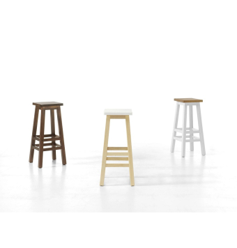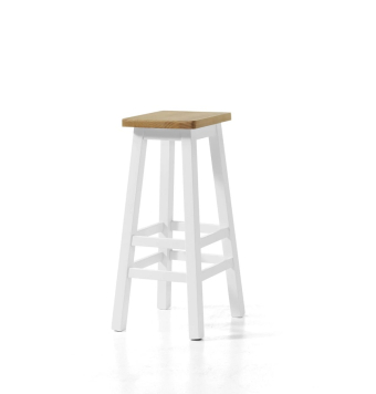 Taburete de madera con chasis de pino macizo y reforzado con tres traviesas laterales, tres traviesas delanteras y tres traviesas traseras. Lo que lo hace muy efectivo y duradero para hostelería.